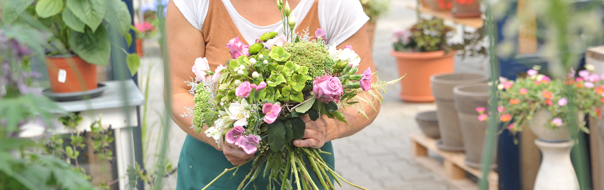 Ein zusätzliches Plus unseres kleinen, familiären Gartenmarktes ist der Service der Floristik. Mit Liebe zum Detail entstehen hier schöne Sträuße und Gestecke sowie Pflanzenarrangements für jeden Anlass. Darüber hinaus fertigen wir stilvollen Trauerschmuck an – in einem persönlichen Gespräch nehmen wir uns viel Zeit, um gemeinsam mit Ihnen die richtige Auswahl zu treffen.