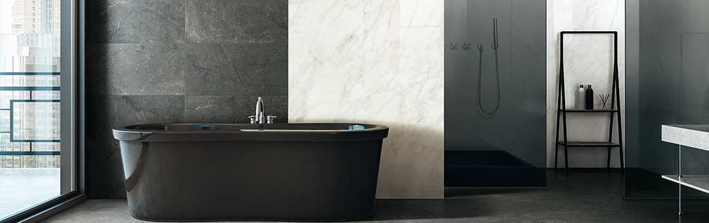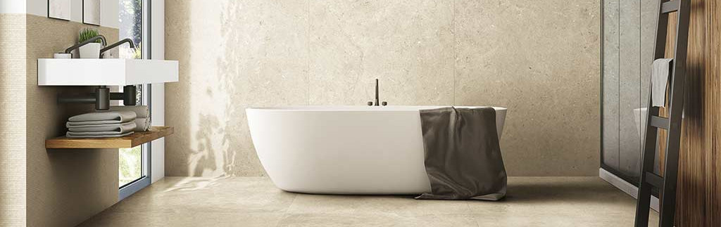 Die hochwertigen Muster und Dekore kommen bei großen Fliesen besonders gut zur Gelltung. So sind XXL Fliesen in Natursteinoptik besondere Hingucker.